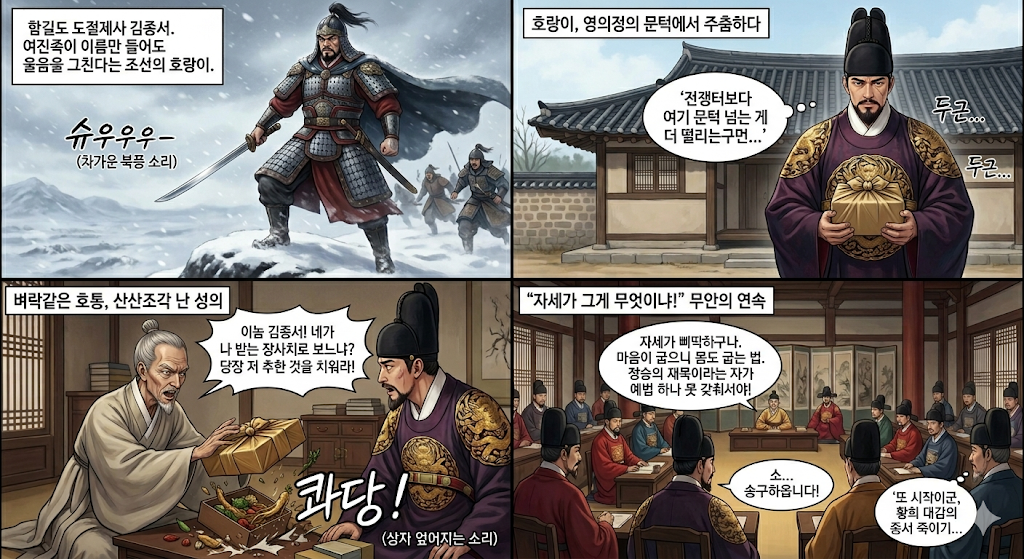 며칠 뒤, 그 선비는 과거 시험에 합격하여 관직을 받기 위해 한양 의정부를 찾아갑니다. “오늘 드디어 나도 관리가 되는구나!” 하며 기세등등하게 안으로 들어선 선비.